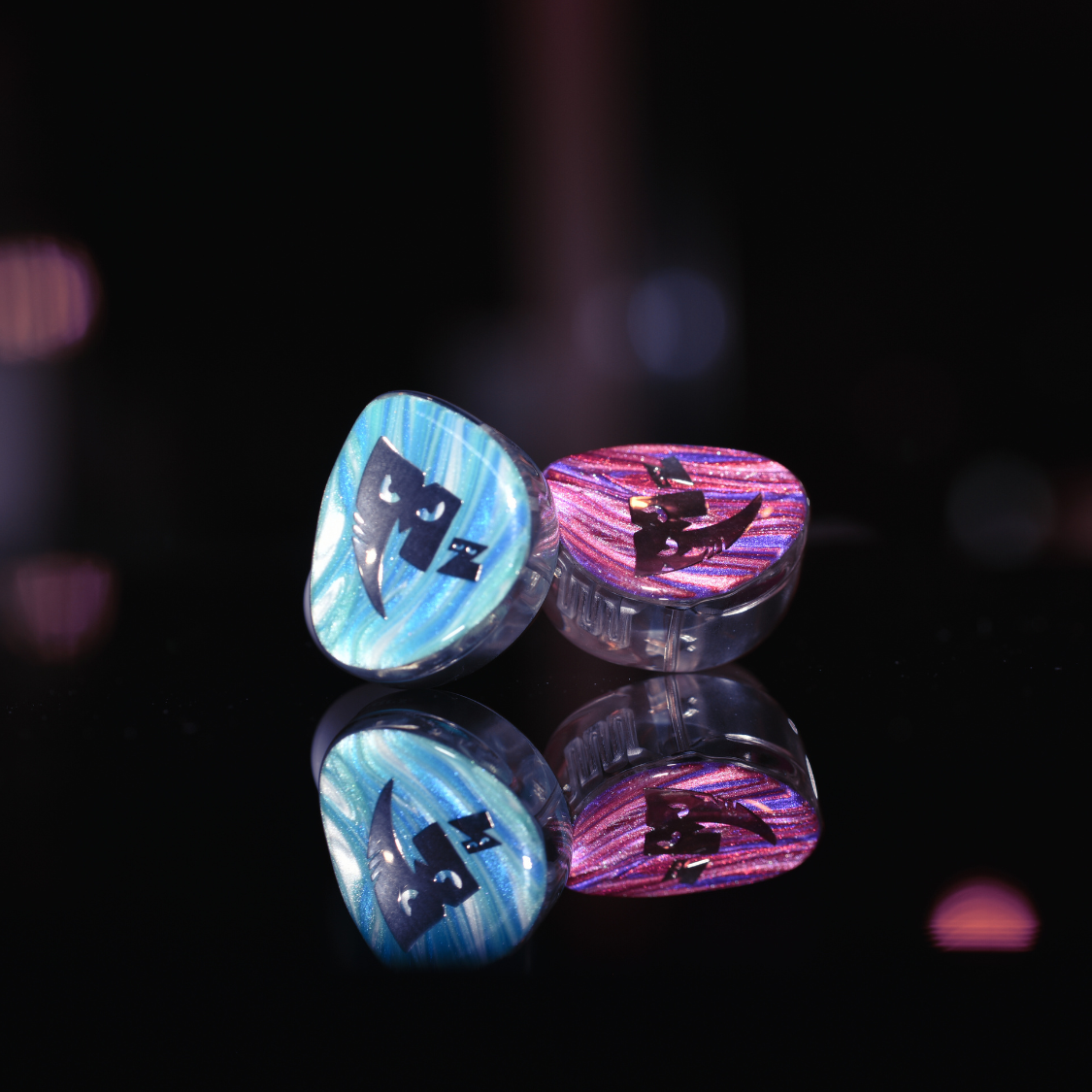 左右で異なるデザインを採用し、左側はシアンを基調に、右側はマゼンタをベースにした複雑なスワール模様をあしらうことで、MonsterZ MATEらしい個性と遊び心を耳元に落とし込みました。大胆で大ぶりなシルバーロゴが、ビジュアル全体を引き締め、コラボモデルならではの存在感を際立たせています。
